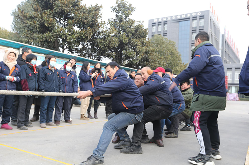经过赛前紧张的准备,比赛在欢快热烈的氛围中拉开了帷幕。随着裁判的一声哨响,赛场上加油声、欢呼声、呐喊声、鼓掌声此起彼伏,回响在乐鱼公司上空。比赛队员个个紧握麻绳、身体微倾,全心投入,全神贯注,全力以赴,未参赛的队员自发组织起来,为参赛队员呐喊助威。